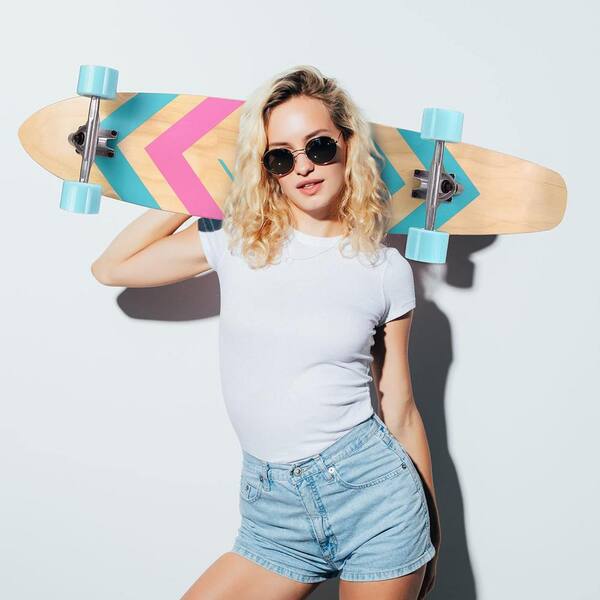 Cosmo 42 in. Geometric Pink Longboard Skateboard Drop Through Deck Complete Maple Cruiser Freestyle, Camber Concave