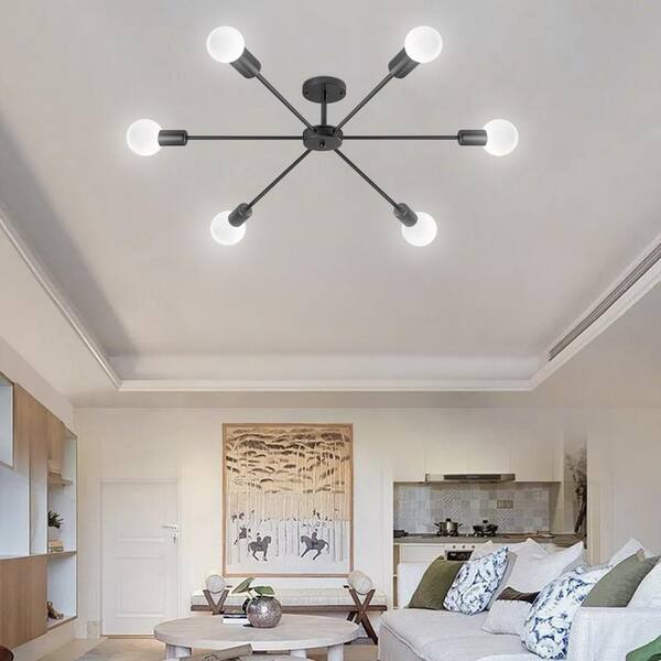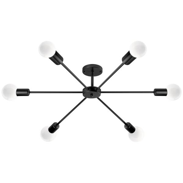 Shanna 22.44 in. 6-Light Modern Black Semi- Flush Mount Ceiling Light with No Bulbs Included