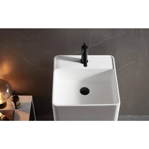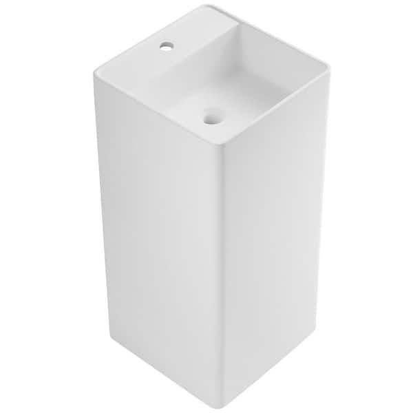 Pedestal Bathroom Composite Sink, 16.5" Round Shape with Single Faucet Hole in Matte White