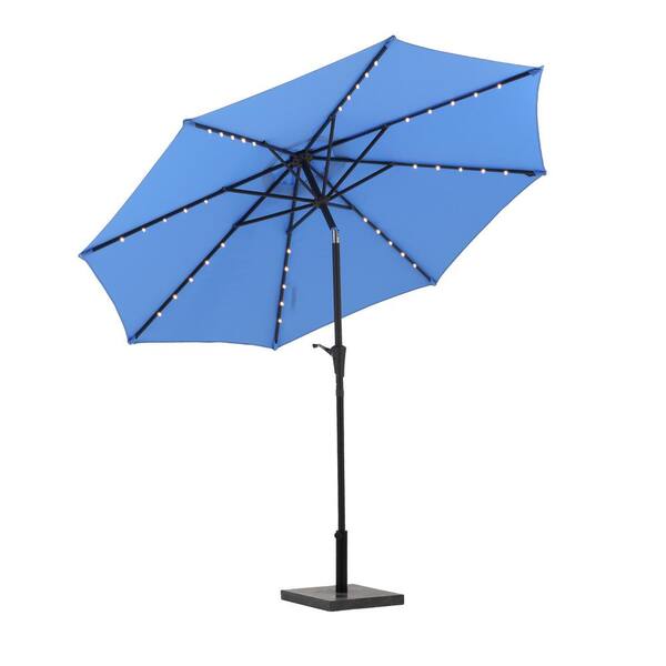 SERGA 9 ft. Outdoor LED Lights Patio Tilt and Crank Market Umbrella in Light Blue