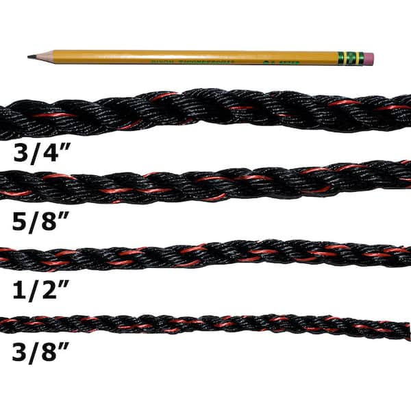 1/2 in. x 100 ft. 3 Strand Twisted Polypropylene General Use Truck Rope-Black With Orange Tracer