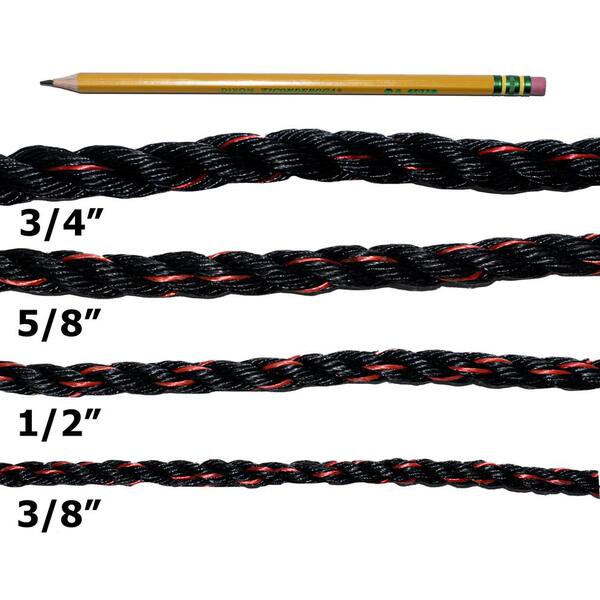 3/4 in. x 50 ft. 3 Strand Twisted Polypropylene General Use Truck Rope-Black With Orange Tracer