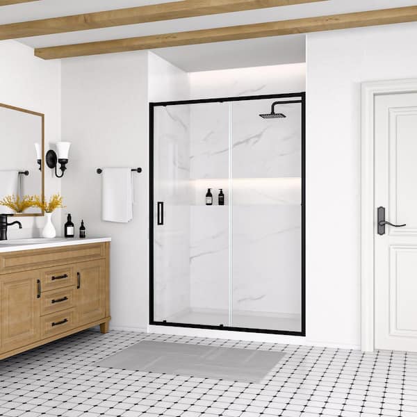 52 to 54 in. W x 74 in. H Single Sliding Framed Shower Door in Matte Black Finish with 1/4 in. (6mm) SGCC Clear Glass