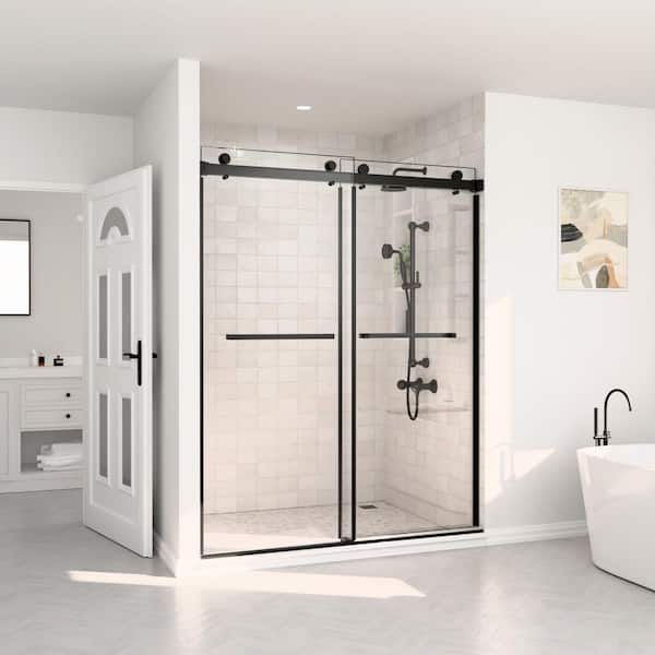 60 in. W x 76 in. H Double Sliding Frameless Shower Door in Matte Black with Smooth Sliding and 3/8 in. SGCC Clear Glass