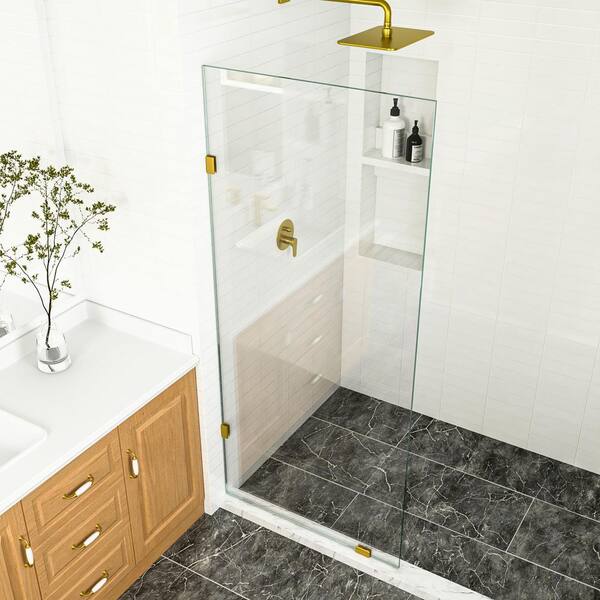 Linea 34 in. W x 78 in. H Frameless Fixed Single Panel Shower Screen Door in Brushed Gold with 3/8 in.(10mm) Clear Glass