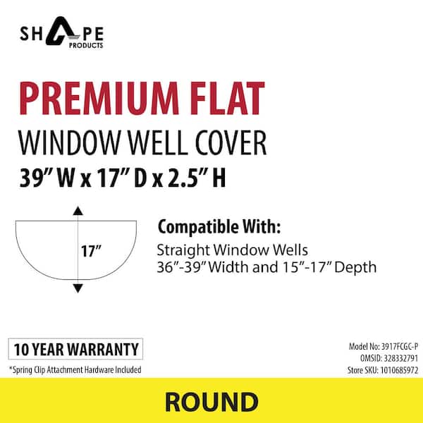 39 in W x 17 in D x 2-1/2 in H Premium Round Flat Window Well Cover