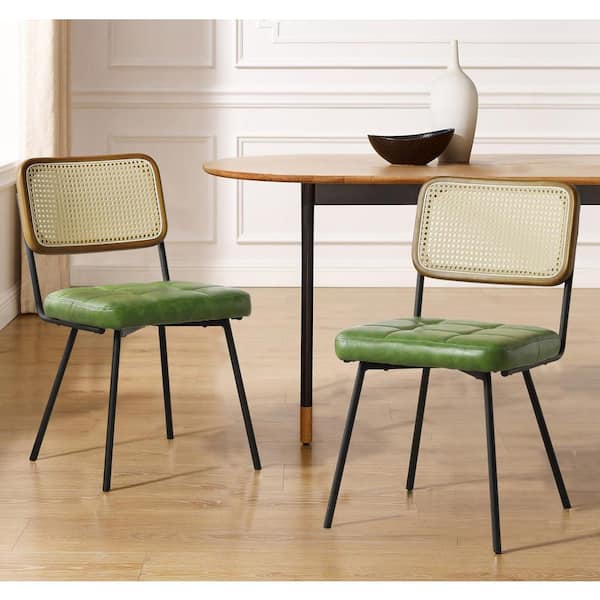 SIASY Green Faux Leather Accent Cane Side Chair Set of 2