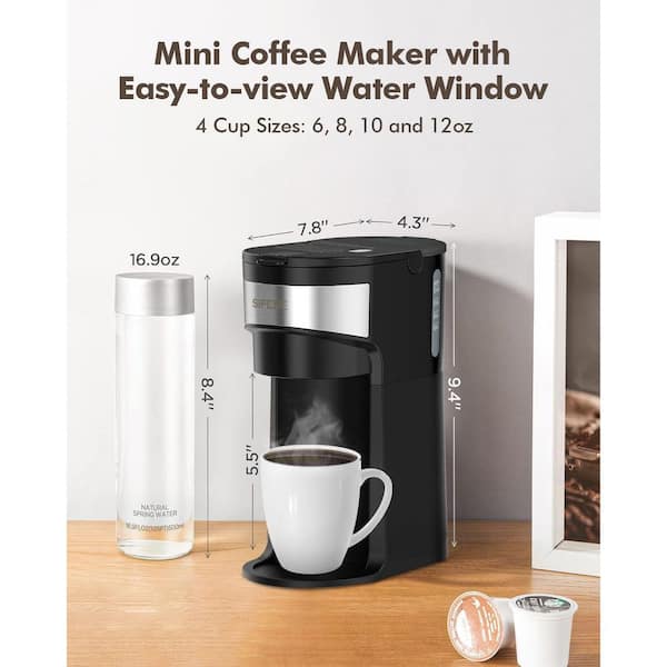 KC211 1-Cup for K Pod and Ground Coffee, Black Stainless Steel, Mini Coffee Maker Single Serve Instant Coffee Brewer