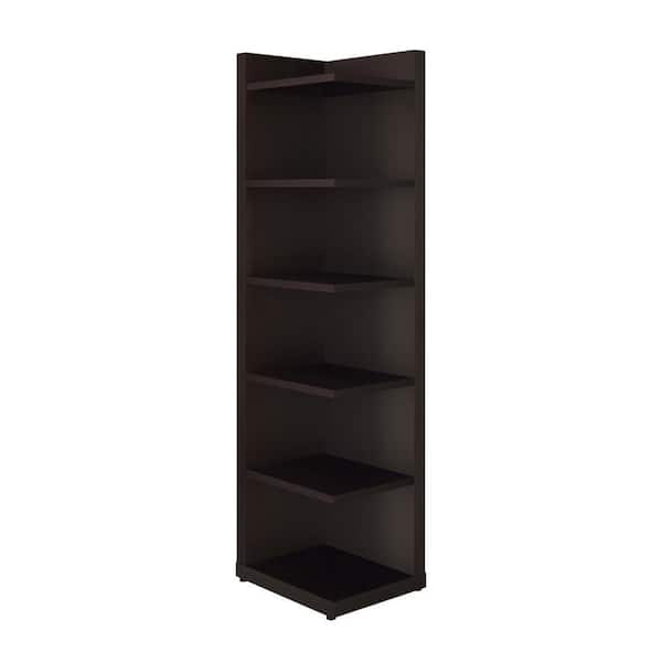 71 in. Tall Cappuccino Medium Density Fiberboard (MDF), 6-Shelf Corner Bookcase