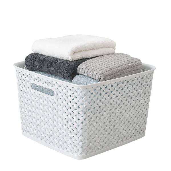 8.66 in. H x 11.42 in. W x 13.78 in. D White Plastic Cube Storage Bin