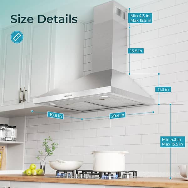 30 in. 450 CFM Kitchen Wall Mount Range Hood with 2W LED Light, 3 Speed Exhaust Fan and Button Controls
