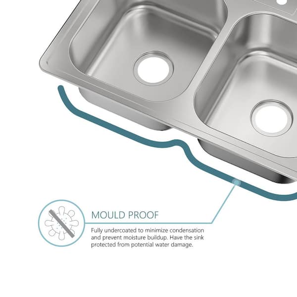 33 in. Drop-In 50/50 Double Bowl 20-Gauge Stainless Steel Kitchen Sink