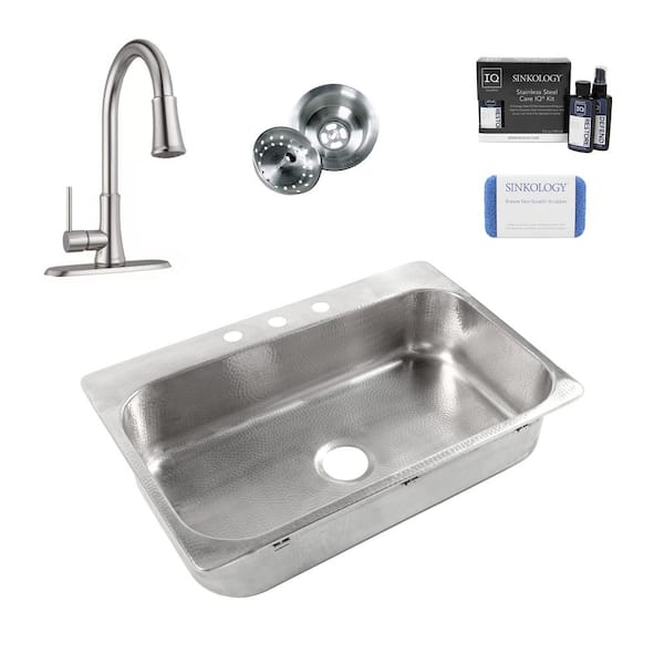 Angelico 33 in. 3-Hole Drop-In Single Bowl 18 Gauge Brushed Stainless Steel Kitchen Sink with Pfirst Faucet Kit