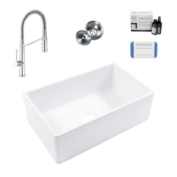 Bradstreet II 30 in. Farmhouse Apron Undermount Single Bowl White Fireclay Kitchen Sink with Bruton Chrome Faucet Kit