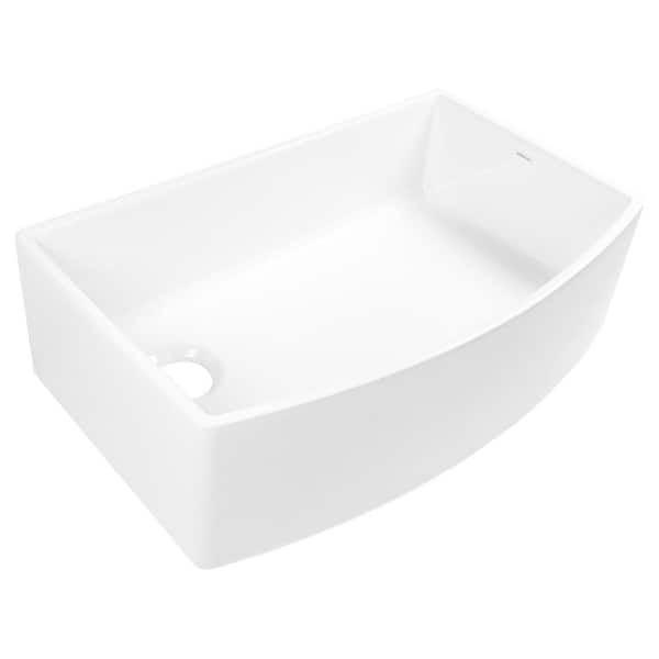 Bradstreet II 33 in. Farmhouse Apron Front Bow Front Single Bowl Crisp White Fireclay Kitchen Sink