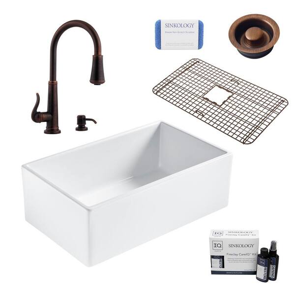Bradstreet II All-in-One Farmhouse Fireclay 30 in. Single Bowl Kitchen Sink with Pfister Faucet and Disposal Drain
