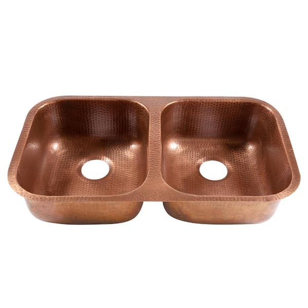 Orwell 32.25 in. Undermount Double Bowl 16-Gauge Antique Copper Kitchen Sink with Port Haven Bronze Faucet Kit