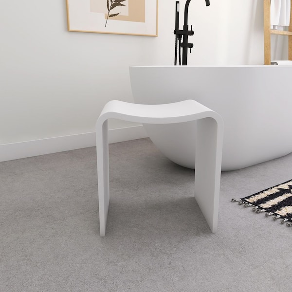 15 in. x 12 in. x 16 in. Solid Surface Shower Stool Vanity Seat Walk In Shower Seat in Walk In Shower SeatMatte White