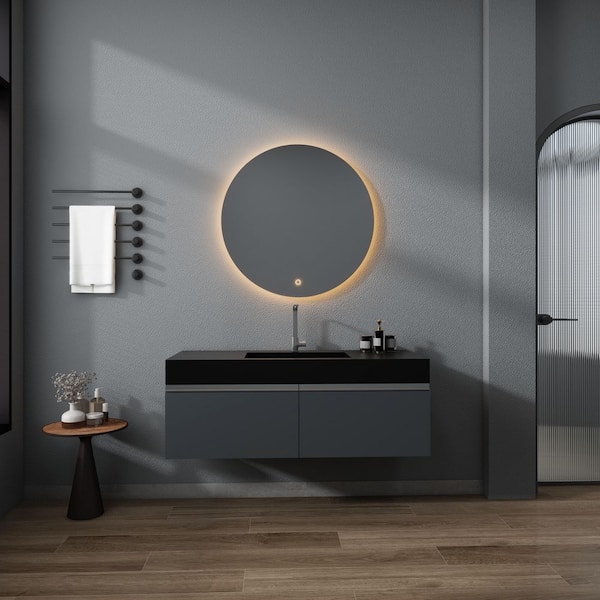47 in. Wall Mount Rectangle Vessel Sink with Faucet Hole, Black Solid Surface Bathroom Vessel Sink