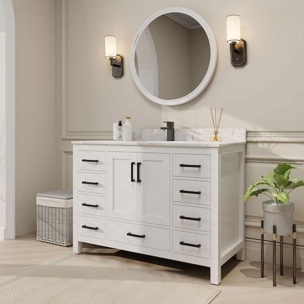 48 in. W x 22 in. D x 34 in. H Bath Vanity in White with Marble Top with Basin