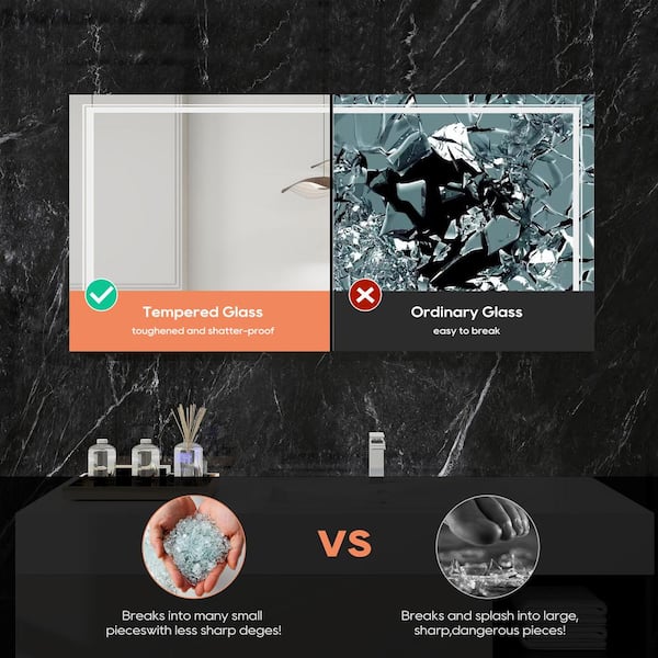 60 in. W. x 28 in. H Rectangular Frameless Wall Mounted Anti-Fog Dimmable LED Light Wall Bathroom Vanity Mirror