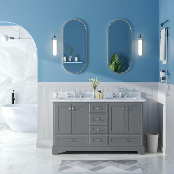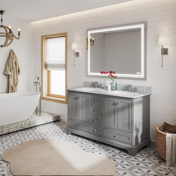 Kiele 60 in. W x 22 in. D x 34 in. H Bath Vanity in Grey with Venato Carrara Top with Basins