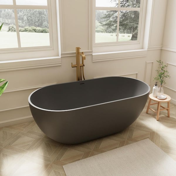 Kylie 59 in. x 29 in. Stone Resin Freestanding Soaking Bathtub in Gray