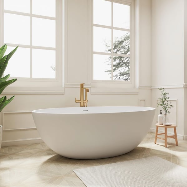 Oeno 67 in. x 39 in. Extra Wide Stone Resin Freestanding Soaking Bathtub in White