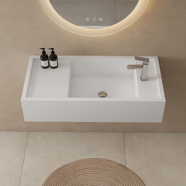 Vera 39 in. x 20 in. x 9 in. Solid Surface Wall-Mounted Bathroom Vessel Sink in White
