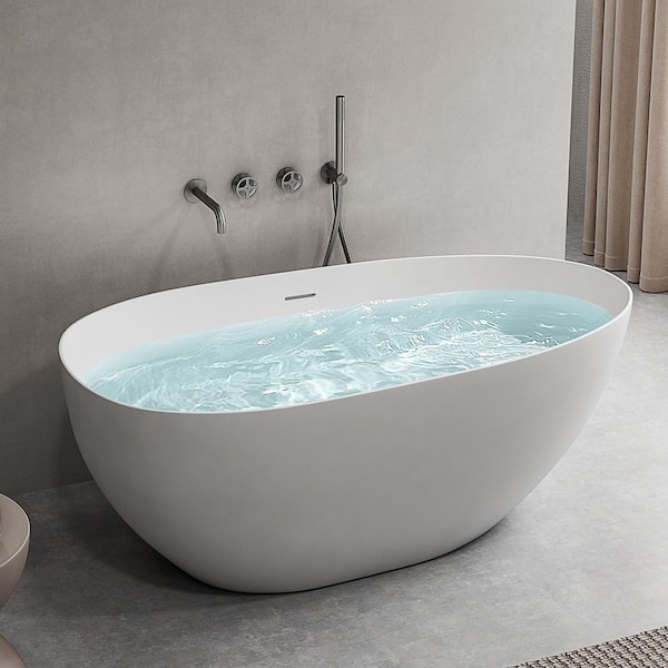 Verna 59 in. x 31 in. Stone Resin Freestanding Soaking Bathtub in White