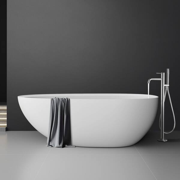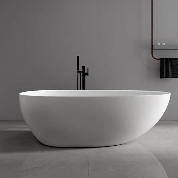 Verna 71 in. x 35 in. Stone Resin Freestanding Soaking Bathtub in White