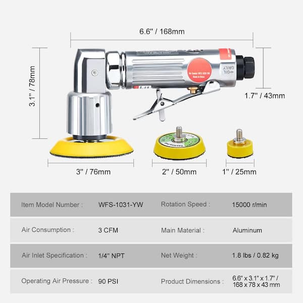 1/2/3 in. Random Orbital Air Sander, High-Speed 15000 RPM Mini Pneumatic Sander for Auto Body Work