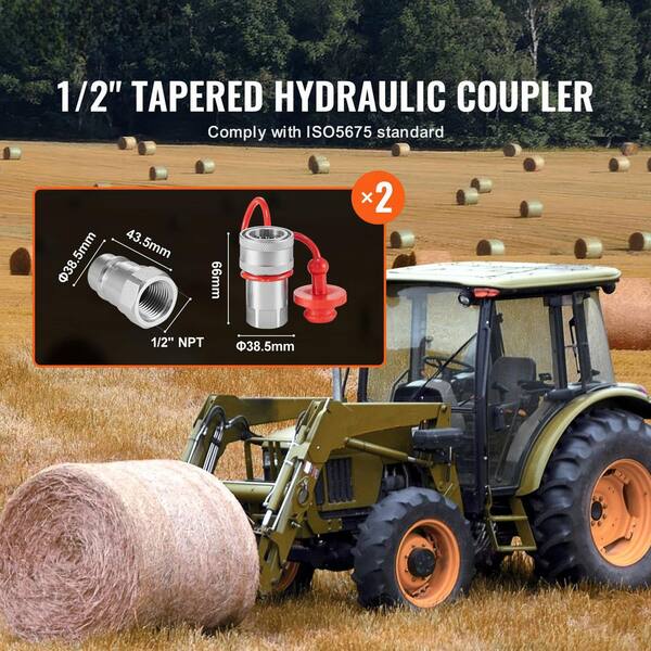 1/2 in. Tapered Hydraulic Couplers, 1/2 in. NPT Skid Steer Hydraulic Quick Connect Couplers with 4 Dust Caps (ISO5675)