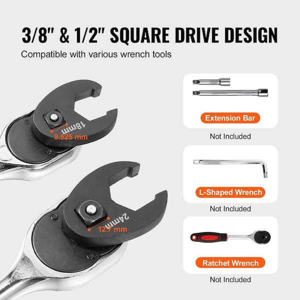 1/2 in. and 3/8 in. Drive Crowfoot Wrench Set, 15-Piece Metric (8-24mm), CRMO Steel, Manganese Finish, with Storage Case