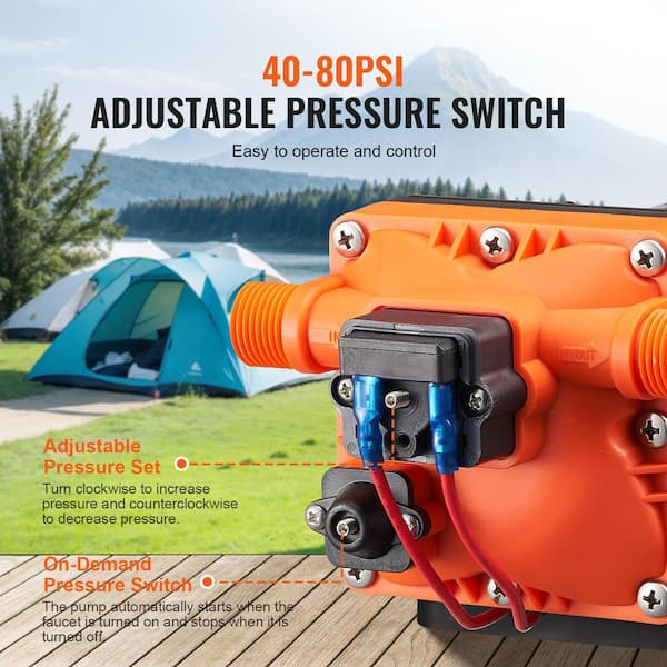 12-Volt Diaphragm Pump, 1/2 in. MNPT for RV/Yacht, 3 GPM, 4-Chamber DC Water Pump with Auto Pressure Switch 40-100 PSI