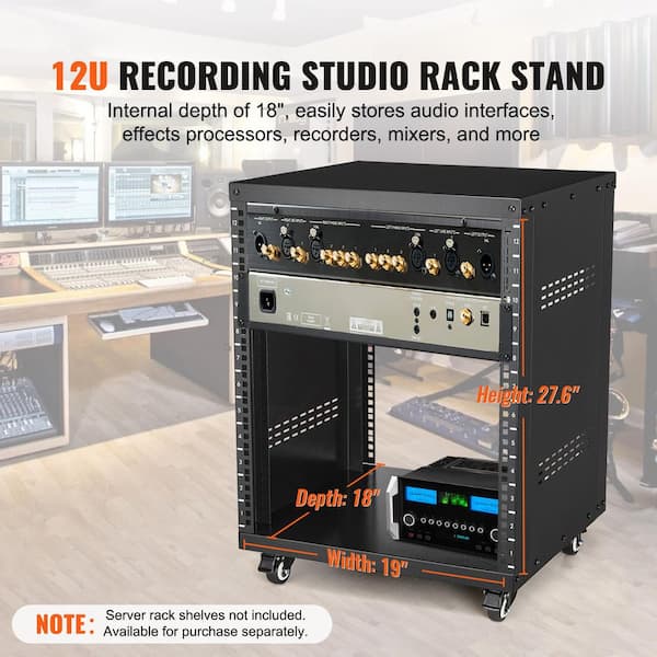 12U AV Rack Stand Steel 20.1 x 27.6 x 20.1 in. Network Stereo Recording Studio Rack Square Holes 1-Tier (Black)