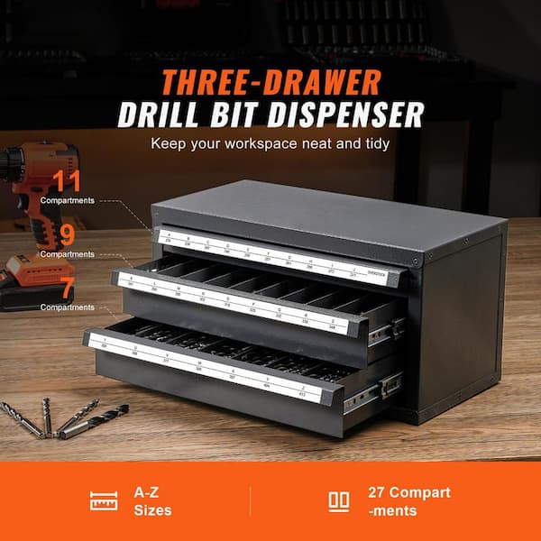 14.76 in. Tool Storage Bin Drill Bit Dispenser 7.87 in.W x 7.87 in.H Cabinet 3-Drawer Drill Bit Organizer Cabinet