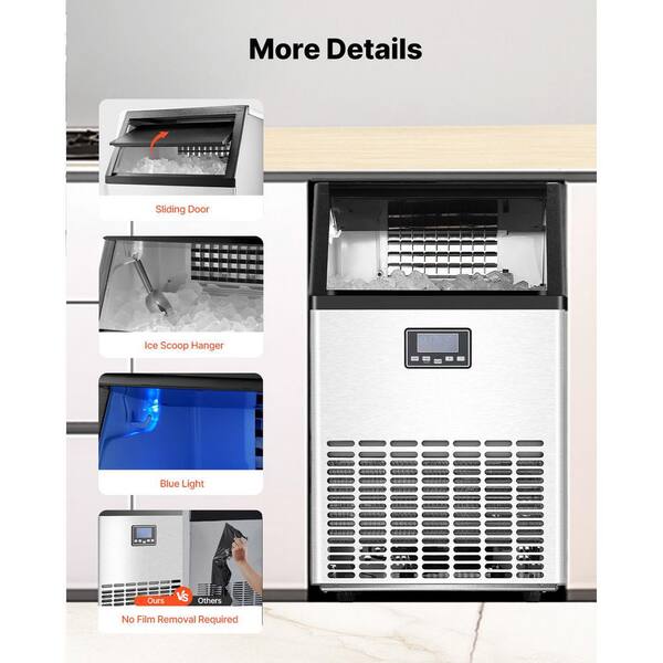 15.7 in. W 140 lbs. /24H Commercial Ice Maker Machine with 33 lbs. 45 Ice Cubes/15 Mins Freestanding 2025 Upgrade Silver