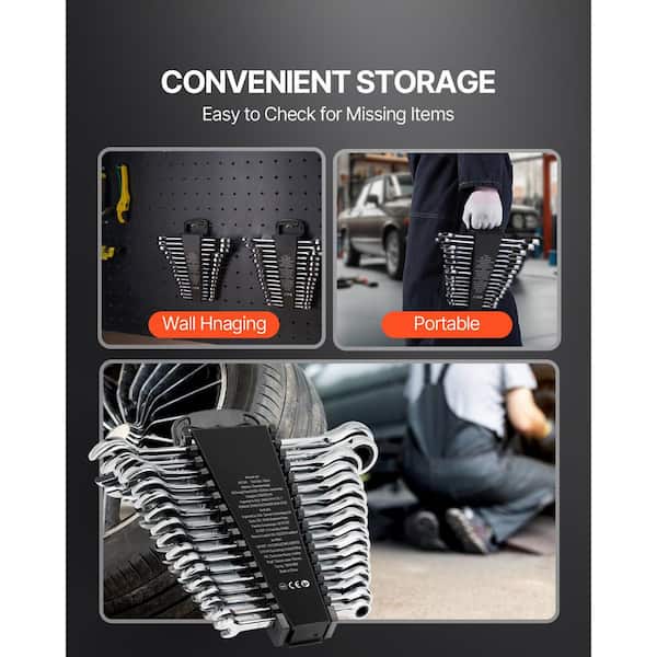 16-Piece Ratcheting Wrench Set, Combination Wrench Set with Organizer Rack, Cr-V Steel, Metric 8mm to 24mm