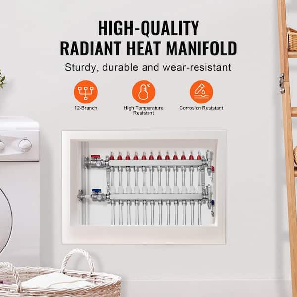 2-Branch Radiant Heat Manifold 1/2 in. PEX Tubing Floor Heating Manifold Pool Controls Set