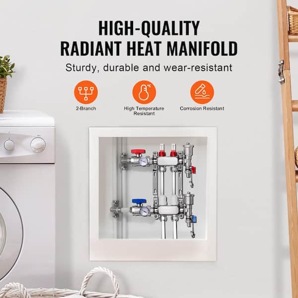 2-Branch Radiant Heat Manifold, 1/2 in. PEX Tubing Manifold, Stainless Steel PEX Manifold Pool Controls for Heating