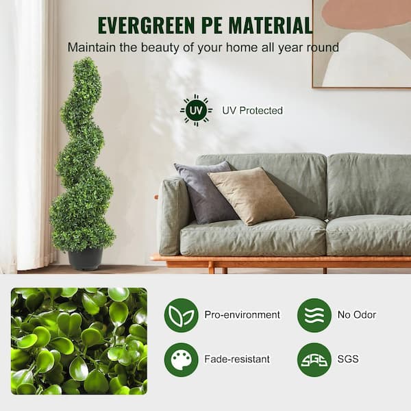 2-Pcs 4 ft. Artificial Boxwood Tree Topiary Spiral Artificial Plant High Decorative Plant Green Plastic PE Iron in Pot