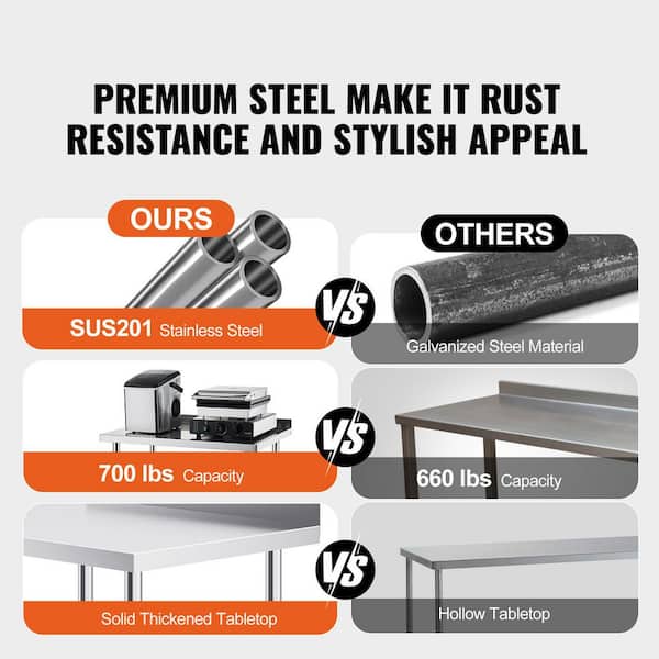 24 x 30 x 40 in. Stainless Steel Work Table, Commercial Food Prep Worktable with Casters, Kitchen Prep Table, Silver