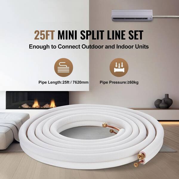 25 ft. Mini Split Line Set 1/4 in. and 3/8 in. O. D Copper Pipes Tubing and Triple-Layer Insulation for Air Conditioning