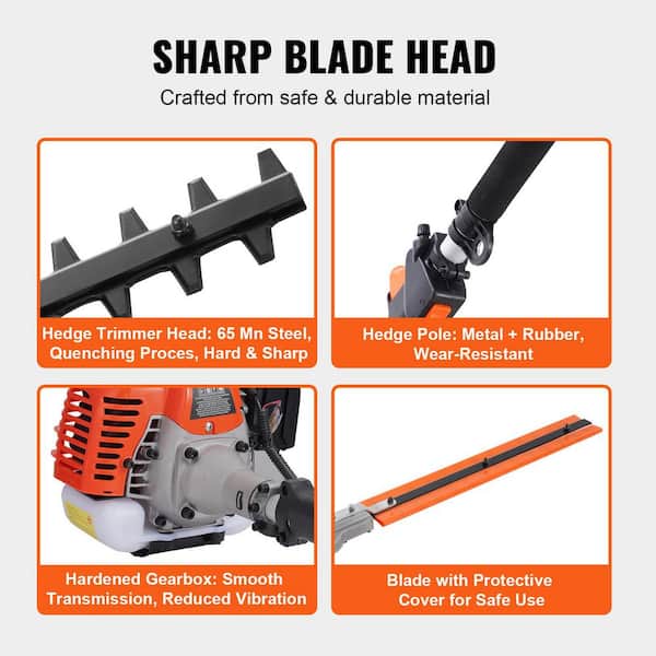 26 CC 5-in-1 Multi-Functional Trimming Tools, Gas Hedge Trimmer, Pole Saw Chainsaw Pruner with Extension Pole