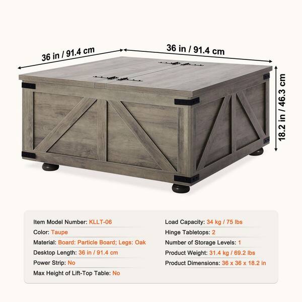 36 in. Farmhouse Coffee Table, Hinged Square Coffee Table with Large Storage Compartment, Wooden Rustic Cocktail Table