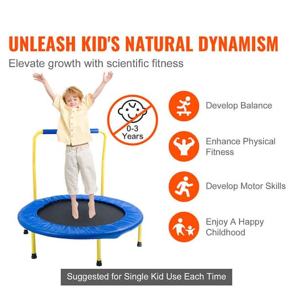 36-in. Kid's Trampoline, Foldable and Portable for Indoor/Outdoor Use, Toddler Trampoline with Safety Foam Handle