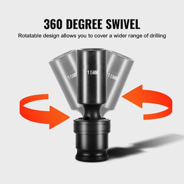 360° Swivel Impact Socket Set, 3/8 in. Socket Set 14-Pieces Deep Universal Metric 10-19mm, 6 Point Cr-Mo Alloy Steel