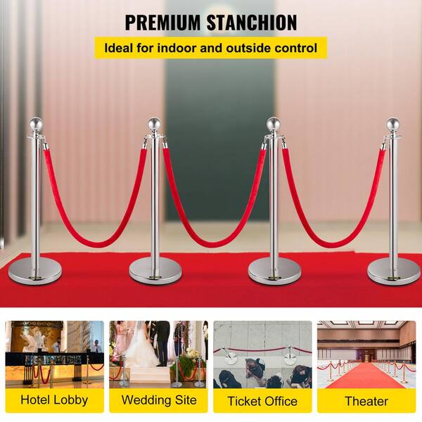 38 in. Stanchion Posts Queue, Red Velvet Rope (3, Silver)