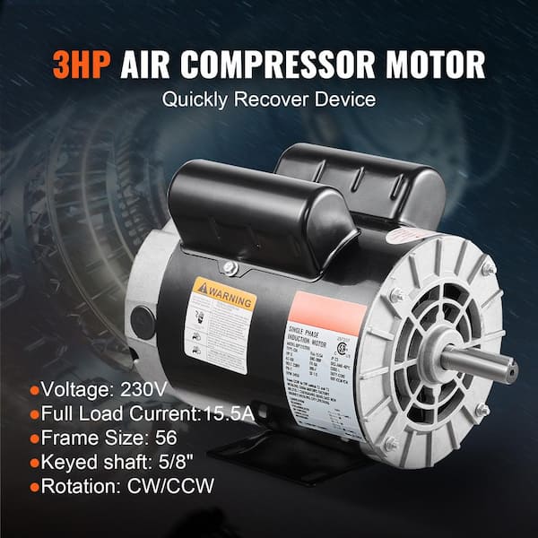 3HP Air Compressor Motor 230V 15.5 Amps Electric Motor, 3450RPM 56 Frame 5/8 in. Keyed Shaft, 1.88 in. Shaft Length